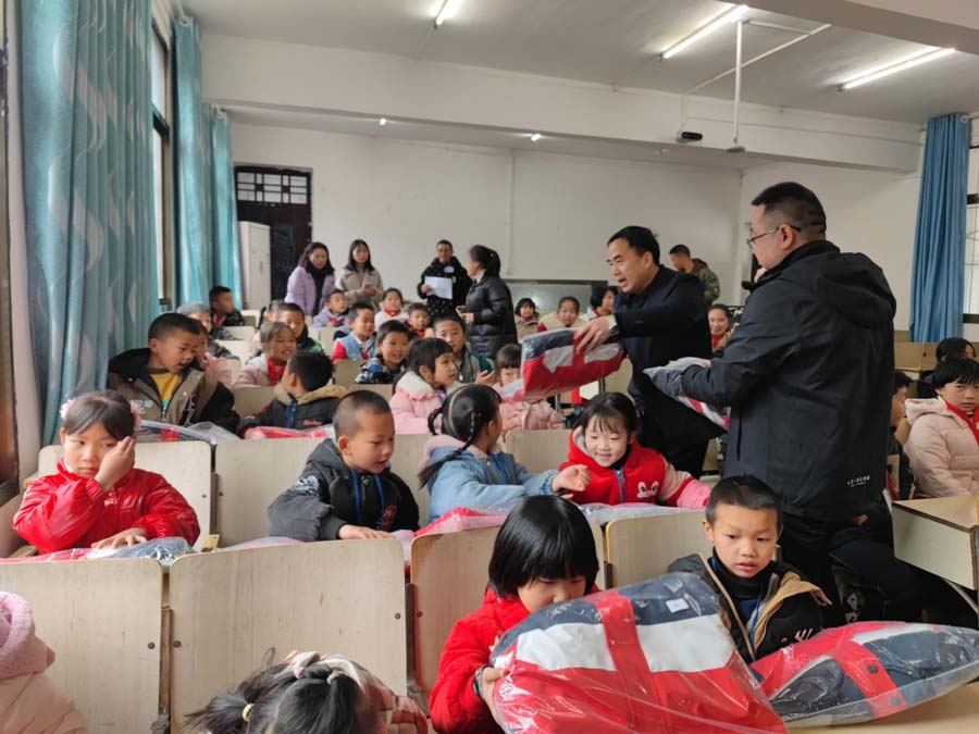 在活動(dòng)現(xiàn)場(chǎng),李文舜向全校老師表示親切慰問(wèn),對(duì)他們克服困難,積極努力工作并取得優(yōu)異成績(jī)給與肯定,希望老師們?cè)俳釉賲?,關(guān)心關(guān)愛留守學(xué)生,確保學(xué)生健康成長(zhǎng),做到既“教書”又“育人”。學(xué)生們紛紛表示收到冬衣很高興,穿上暖暖的冬衣在教室里就不會(huì)冷,冬衣穿到身上暖到心里,將會(huì)更加努力學(xué)習(xí),做對(duì)社會(huì)有用的人。