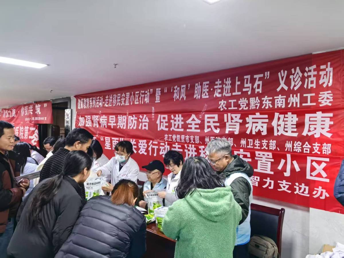 為進(jìn)一步提高腎臟病防治知識(shí)的社會(huì)普及率,筑牢全民腎臟健康屏障,2025年3月13日第20個(gè)世界腎臟日,州智力支邊辦聯(lián)合農(nóng)工黨黔東南州工委組織州人民醫(yī)院、州疾控中心、貴州醫(yī)科大學(xué)第二附屬醫(yī)院、凱里市中醫(yī)院等農(nóng)工黨員醫(yī)療專家走進(jìn)凱里市上馬石社區(qū),開(kāi)展“健康教育系列活動(dòng)——走進(jìn)移民安置小區(qū)行動(dòng)”“‘和風(fēng)’助醫(yī)·走進(jìn)上馬石”“星雨關(guān)愛(ài)行動(dòng)”義診活動(dòng),讓群眾就近享受到優(yōu)質(zhì)的醫(yī)療服務(wù)。