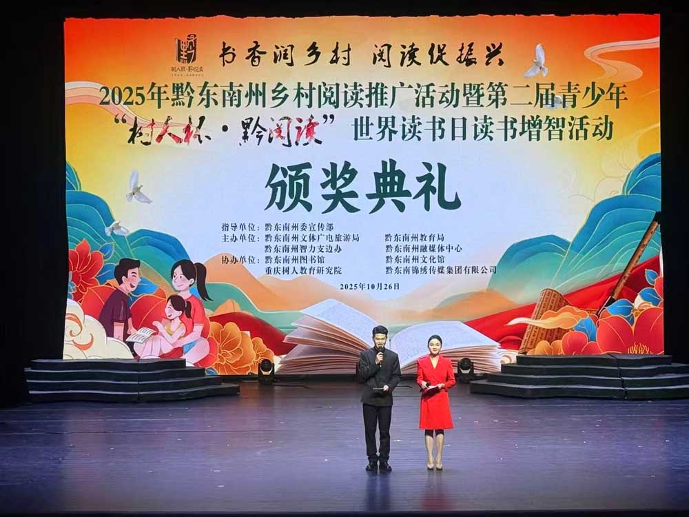 2025年10月26日,黔東南州鄉(xiāng)村閱讀推廣活動暨第二屆青少年“樹人杯·黔悅讀”世界讀書日讀書增智活動頒獎典禮在凱里市文化劇場隆重舉行。本次活動旨在推動鄉(xiāng)村閱讀文化發(fā)展,激發(fā)青少年閱讀興趣,提升群眾文化素養(yǎng),營造“書香黔東南”的良好氛圍。