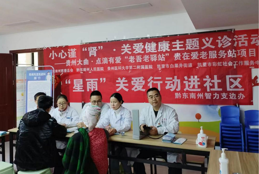 為切實(shí)做好服務(wù)基層、服務(wù)群眾工作,進(jìn)一步提高群眾健康意識,普及健康生活方式,更好地服務(wù)易地扶貧搬遷群眾,3月14日,正值世界腎病日,州智力支邊辦聯(lián)合農(nóng)工黨州工委、凱里市智力支邊辦,組織州人民醫(yī)院、貴醫(yī)二附院、州中醫(yī)院等多家醫(yī)療機(jī)構(gòu)腎內(nèi)科專家,赴凱里市易地移民安置小區(qū)白果井街道舉行“星雨”義診等關(guān)愛活動,讓群眾就近享受到優(yōu)質(zhì)的醫(yī)療服務(wù)。